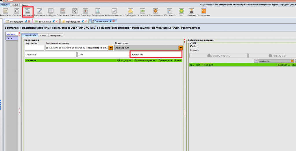 1. Открываем модуль Зоомагазин. Проверяем чтобы курсор был активный в окне